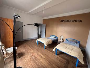 Bleue" avec deux lits simples et un point d’eau ; "La Marron"